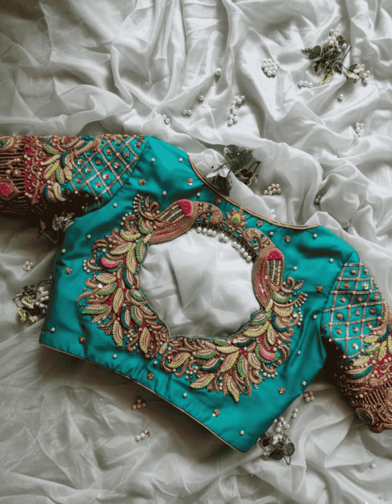 Trending designs include heavy maggam work, gold zari embroidery, 3D floral motifs, mirror work, pearl embellishments, and deep-back bridal blouse patterns.